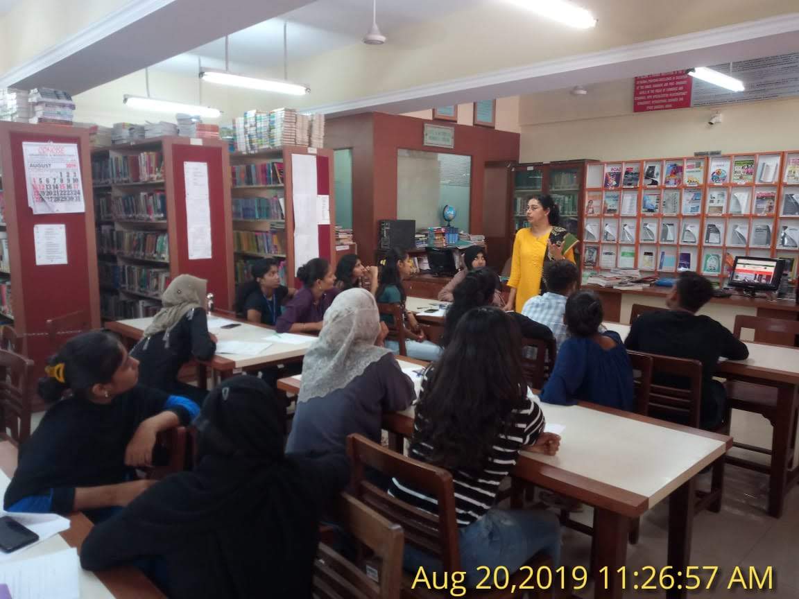 The College Library conducts orientation programme for the students in the beginning of the academic year. The main objective of the library orientation is to introduce the library rules, facilities, resources, services and search techniques to the students. It helps to familiarize students with the available library resources, their location, and technique to locate them, library services and facilities offered by the Library and its rules and procedures. Students are also trained to search Online Catalogue (OPAC) of the Library.